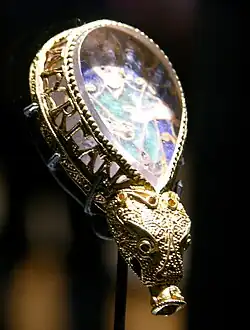 The Bronze Age began around 2500 BC with the appearance of bronze objects. This coincides with the appearance of the characteristic Bell Beaker culture, following migration of new people from the continent. According to Olalde et al. (2018), after 2500 BC Britain's Neolithic population was largely replaced by this new Bell Beaker population, that was genetically related to the Corded Ware culture of central and eastern Europe and the Yamnaya culture of the eastern European Pontic-Caspian Steppe.[15][16] While the migration of these Beaker peoples must have been accompanied by a language shift, the Celtic languages were probably introduced by later Celtic migrations.[17]