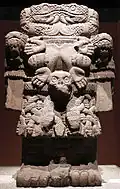 Mesoamericans had belief systems where every element of the cosmos and everything that forms part of nature represented a supernatural manifestation. The spiritual pantheon was vast and extremely complex. They frequently took on different characteristics and even names in other areas, but in effect, they transcended cultures and time. Great masks with gaping jaws and monstrous features in stone or stucco were often located at the entrance to temples, symbolizing a cavern or cave on the flanks of the mountains that allowed access to the depths of Mother Earth and the shadowy roads that lead to the underworld.[8] Cults connected with the jaguar and jade especially permeated religion throughout Mesoamerica. Jade, with its translucent green color, was revered along with water as a symbol of life and fertility. The jaguar, agile, powerful, and fast, was especially connected with warriors and as spirit guides of shamans. Despite differences in chronology or geography, the crucial aspects of this religious pantheon were shared amongst the people of ancient Mesoamerica.[8] Thus, this quality of acceptance of new gods to the collection of existing gods may have been one of the shaping characteristics for success during the Christianization of Mesoamerica. New gods did not at once replace the old; they initially joined the ever-growing family of deities or were merged with existing ones that seemed to share similar characteristics or responsibilities.[8]