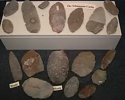 Archaeological evidence of Native American presence dates between 2,500 and 5,000 years ago at the Jeffers Petroglyphs site in southwest Minnesota.[8] The exposed Sioux Quartzite rock is dotted with several thousand petroglyphs thought to date to the Late Archaic Period (3000 BC to 1000 BC).[9] Around 700 BC, burial mounds were first created, and the practice continued until the arrival of Europeans, when 10,000[10] to 11,000[11] such mounds dotted the state. The Hopewell burial mounds in Saint Paul are protected from invasive modern tourism.[12]