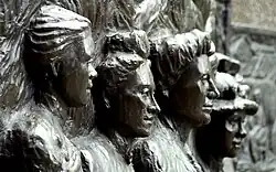 Tribute to the Suffragettes memorial in Christchurch adjacent to Our City. The figures shown from left to right are Amey Daldy, Kate Sheppard, Ada Wells and Harriet Morison