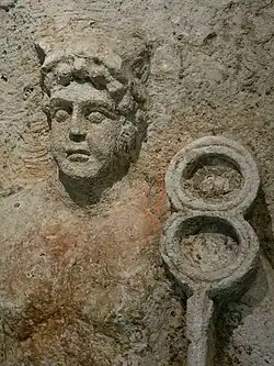 The settlement was called "Lucotocia" (according to the ancient Greek geographer Strabo) or "Leucotecia" (according to Roman geographer Ptolemy), and may have taken its name from the Celtic word lugo or luco, for a marsh or swamp.[11] It had a strategic position on the main trade route, via the Seine and Rhône rivers, between Britain and to the Roman colony of Provence and the Mediterranean Sea.[12][13] The location and the fees for crossing the bridge and passing along the river made the town prosperous,[14] so much so that it was able to mint its own gold coins.