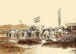 On September 23, 1868, hundreds of men and women in the town of Lares—stricken by poverty and politically estranged from Spain—revolted against Spanish rule, seeking Puerto Rican independence. The Grito de Lares ("Lares Cry" or "Lares Uprising") was planned by a group led by Dr. Ramón Emeterio Betances, at the time exiled to the Dominican Republic, and Segundo Ruiz Belvis.[34] Dr. Betances had founded the Comité Revolucionario de Puerto Rico (Revolutionary Committee of Puerto Rico) in January 1868. The most important figures in the uprising were Manuel Rojas, Mathias Brugman, Mariana Bracetti, Francisco Ramírez Medina and Lola Rodríguez de Tió. The uprising, although significant, was quickly controlled by Spanish authorities.[35]
