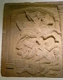The Roman invasion of Britain began in earnest in AD 43, leading to the establishment of the Roman province of Britannia in the south. By the year 71, the Roman governor Quintus Petillius Cerialis had launched an invasion of what is now Scotland.[36] In the year 78, Gnaeus Julius Agricola arrived in Britain to take up his appointment as the new governor and began a series of major incursions. He is said to have pushed his armies to the estuary of the "River Taus" (usually assumed to be the River Tay) and established forts there, including a legionary fortress at Inchtuthil. After his victory over the northern tribes at Mons Graupius in 84, a series of forts and towers were established along the Gask Ridge, which marked the boundary between the Lowland and Highland zones, probably forming the first Roman limes or frontier in Scotland. Agricola's successors were unable or unwilling to further subdue the far north.[37] By the year 87, the occupation was limited to the Southern Uplands[38] and by the end of the first century the northern limit of Roman expansion was a line drawn between the Tyne and Solway Firth.[39] The Romans eventually withdrew to a line in what is now northern England, building the fortification known as Hadrian's Wall from coast to coast.[40]