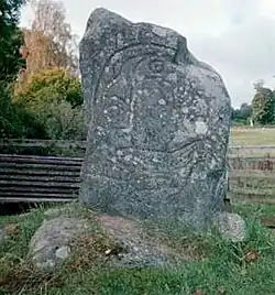 Although there have been claims of Lower Paleolithic finds in Scotland, none stand up to close scrutiny.[7] The earliest known human presence in Scotland are those of Upper Paleolithic hunter gathers, dating to the Bølling–Allerød Interstadial warm period at the end of the last ice age, around 14,670 to c. 12,900 years Before Present shortly following the retreat of the ice sheet that had previously covered Scotland.[8] The earliest known site of human presence is the Howburn Farm encampment near Biggar, South Lanarkshire, which is dated to around 14,500 to 14,000 years ago, and is associated with the reindeer hunting Hamburgian culture.[9][10][11] Several other waves of late Upper Paleolithic peoples are known to have inhabited Scotland, including the Federmesser and Ahrensburgian cultures.[8] Other sites found around Scotland build up a picture of highly mobile boat-using people making tools from bone, stone and antlers.[12] The oldest house for which there is evidence in Britain is the oval structure of wooden posts found at South Queensferry near the Firth of Forth, dating from the Mesolithic period, about 8240 BC.[13] The earliest stone structures are probably the three hearths found at Jura, dated to about 6000 BC.[14]