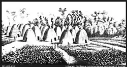 At the time of first contact between the Europeans and the Americans, the Europeans practiced "extensive agriculture, based on the plough and draught animals," with tenants under landlords, but also forced labor or slavery, while the Indigenous peoples of the Americas practiced "intensive agriculture, based on human labour."[107] Europeans wanted control of land for the grazing of their livestock and property rights for the control of production. Though they were impressed with the productivity of traditional farming techniques, they saw no connection to their system and were dismissive of Native American practices as "gardening" rather than a commercializable enterprise.[107][108] Due to several thousand years of selective breeding, maize, the hemisphere's most important crop, was more productive than Old World grain crops. Maize produced two and one-half times more calories per acre than wheat and barley.[109]