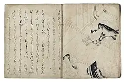 The Man'yōshū is the oldest collection of Japanese poetry, written in Japanese with Chinese characters through Man'yōgana and compiling waka poetry from the fifth to eighth centuries.[102] The Kokin Wakashū was a collection of ninth century waka poetry compiled by imperial command. While the Man'yōshū was varied in the classes and professions of its writers, the poems of the Kokin Wakashū were limited to those of aristocratic poets.[103] The Tales of Ise is a collection of loosely connected poems and narratives based on the life of Ariwara no Narihira.[104]