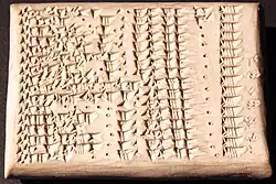 The Mesopotamian cuneiform tablet Plimpton 322, dating to the 18th century BCE, records a number of Pythagorean triplets (3, 4, 5) and (5, 12, 13) ...,[62] hinting that the ancient Mesopotamians might have been aware of the Pythagorean theorem over a millennium before Pythagoras.[63][64][65]