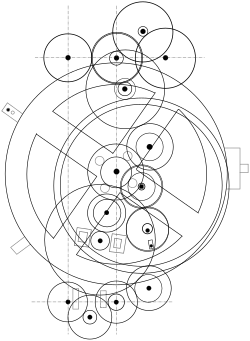 Schematic of the Antikythera mechanism (150–100 BCE).