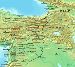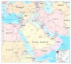 The Arabian peninsula already played a role in the power struggles of the Byzantines and Sasanians. While Byzantium allied itself with the Kingdom of Aksum in the horn of Africa, the Sasanian Empire assisted the Himyarite Kingdom in what is now Yemen. Thus the clash between the kingdoms of Aksum and Himyar in 525 displayed a higher power struggle between Byzantium and Persia for control of the Red Sea trade. Territorial wars soon became common, with the Byzantines and Sasanians fighting over upper Mesopotamia and Armenia and key cities that facilitated trade from Arabia, India, and China.[26] Byzantium, as the continuation of the Eastern Roman Empire, continued control of the latter's territories in the Middle East. Since 527, this included Anatolia, Syria, Lebanon, Palestine, and Egypt. In 603 the Sasanians invaded, conquering Damascus and Egypt. It was Emperor Heraclius who was able to repel these invasions, and in 628 he replaced the Sasanian Great King with a more docile one. The fighting weakened both states, leaving the stage open to a new power.[27][28]