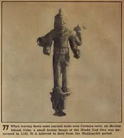 The Kingdom of Cebu was a precolonial state. It was founded by Sri Lumay otherwise known as Rajamuda Lumaya, who was a half Malay half Tamil (South Indian) from Sumatra.[121] The Chinese recorded the name of the Rajahanate of Cebu as 'Sokbu' (束務) in Hokkien or 'Suwu' in Mandarin.[122] A kingdom of the same name as Suwu was mentioned to have existed as early as the year 1225, according to the Chinese Annals the Zhufan Zhi (諸蕃志)[123] and the later 17th Century Chinese traders to the Philippines referred to Cebu using the same term, it is thus presumed to be the same location.[122] The Indianized royalty of Cebu ruled the native Cebuano people from the Sanskrit-labeled capital, Singhapala[124] which is Sanskrit[125] for "Lion City", the same root words as with the modern city-state of Singapore. This rajahnate warred against the 'magalos' (slave traders) of Maguindanao and had an alliance with the Rajahnate of Butuan and Indianized Kutai in South Borneo, before it was weakened by the insurrection of Datu Lapulapu.[63] The kingdom enjoyed the diplomatic recognition of Thailand as observed by Ferdinand Magellan's expedition which noted an embassy borne by a ship from Siam (Thailand) that had landed at the Rajahnate and had tributes meant for Rajah Humabon.[126][127] Goods exported from Cebu include: rice, millet, panicum, maize, figs, oranges, lemons, sugar-canes, cocos, gourds, ginger, honey, and other such things; also palm-wine and some gold.[128]