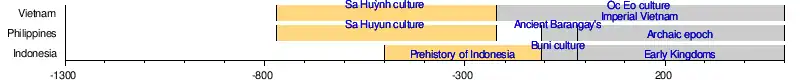 Ambiguity of what is Sa Huỳnh culture puts into question its extent of influence in Southeast Asia. Sa Huỳnh culture is characterized by use of cylindrical or egg-shaped burial jars associated with hat-shaped lids. Using its mortuary practice as a new definition, Sa Huỳnh culture should be geographically restricted across Central Vietnam between Hue City in the north and Nha Trang City in the south. Recent archeological research reveals that the potteries in Kalanay Cave are quite different from those of the Sa Huỳnh but strikingly similar to those in Hoa Diem site, Central Vietnam and Samui Island, Thailand. New estimate dates the artifacts in Kalanay cave to come much later than Sa Huỳnh culture at 200–300 CE. Bio-anthropological analysis of human fossils found also confirmed the colonization of Vietnam by Austronesian people from insular Southeast Asia in, e.g., the Hoa Diem site.[59][60]
