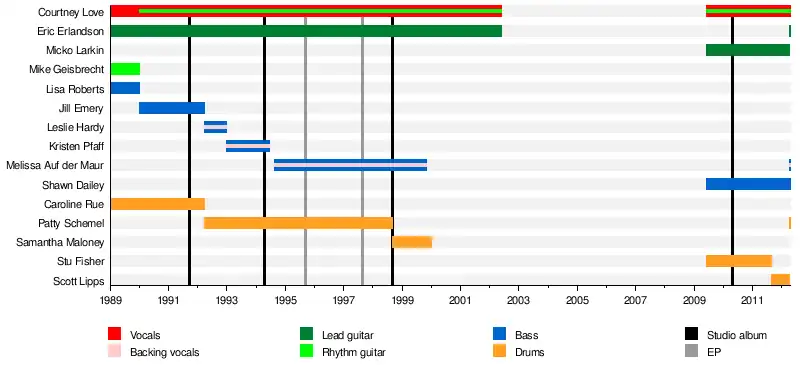 - Courtney Love – lead vocals, rhythm guitar (1989–2002, 2009–2012)