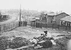 ![]() Starved peasants on a street in Kharkiv, 1933, Ukraine's capital at the time | |