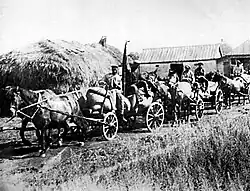 Other scholars argue that in other years preceding the famine this was not the case. For example, Stanislav Kulchytsky claims Ukraine produced more grain in 1930 than the Central Black Earth Oblast, Middle and Lower Volga and North Caucasus regions all together, which had never been done before, and on average gave 4.7 quintals of grain from every sown hectare to the state—a record-breaking index of marketability—but was unable to fulfill the grain quota for 1930 until May 1931. Ukraine produced a similar amount of grain in 1931; however, by the late spring of 1932 "many districts were left with no reserves of produce or fodder at all".[10] Despite this, according to statistics gathered by Nataliia Levchuk, Ukraine and North Caucasus Krai delivered almost 100% of their grain procurement in 1931 versus 67% in two Russian Oblasts during the same period versus 1932 where three Russian regions delivered almost all of their procurements and Ukraine and North Caucasus did not.[42] This can partially be explained by Ukrainian regions losing a third of their harvests and Russian regions losing by comparison only 15% of their harvest.[42]