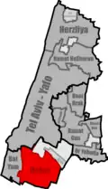 Holon (Hebrew: חולון, pronounced [χoˈlon] ⓘ) is a city in the Tel Aviv District of Israel, located south of Tel Aviv. Holon is part of the Gush Dan metropolitan area. In 2023, it had a population of 192,980,[1] making it the tenth most populous city in Israel. Holon has the second-largest industrial zone in Israel, after Haifa.[2]