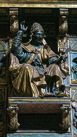 Tomb of Pope Innocent VIII, transferred from the Old St. Peter's Basilica. The left hand holds the spearhead of the holy lance, presented to the Pope by Sultan Bayezid II[54].