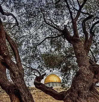 Olive trees, like this one in Jerusalem, have intrinsic symbolism in Judaism, Christianity, and Islam.[6]