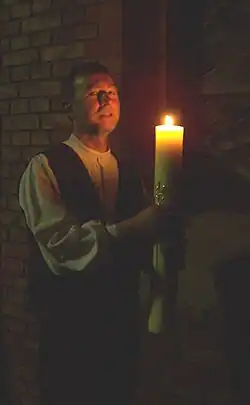 Tenebrae (Latin for "shadows" or "darkness") is celebrated within Western Christianity during Holy Week, especially on Spy Wednesday.[24][25] Tenebrae is distinctive for its gradual extinguishing of candles while a series of readings and psalms is chanted or recited. Tenebrae liturgies are celebrated by some parishes of the Roman Rite of the Catholic Church, the Polish National Catholic Church, the Lutheran Churches, the Moravian Church, the Anglican Communion, the Methodist Churches, and Western Rite Orthodoxy within the Eastern Orthodox Church.[26]