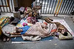 The legal status of homeless people varies from place to place.[1] Homeless enumeration studies conducted by the government of the United States[2][3] also include people who sleep in a public or private place that is not designed for use as a regular sleeping accommodation for human beings.[4][5] Homelessness and poverty are interrelated.[6] There is no standardized method for counting homeless individuals and identifying their needs; consequently, most cities only have estimated figures for their homeless populations.[7]