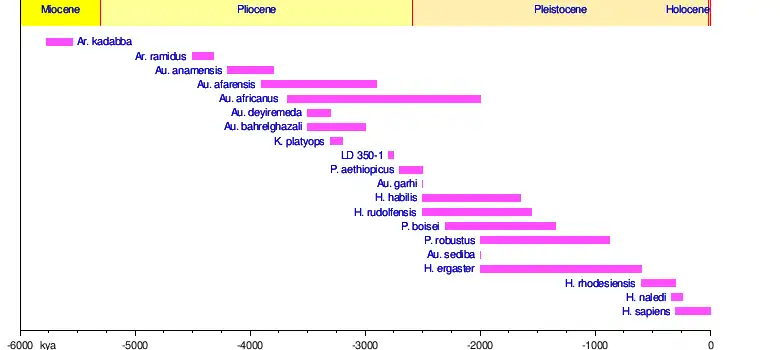 Hominin timeline | ||||||||||||||||||||||||||||