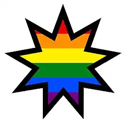 Artist's symbolic depiction of the intersection of the Baháʼí Faith and homosexuality combining the Bahai nine-pointed star and LGBTQ rainbow flag.