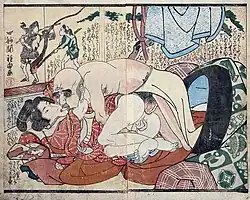 Art featuring lesbian sex was made also, mostly during the Edo period.[67] This type of art, along with other erotic art was known as shunga, and scenes of lesbian sex was not uncommon.[67][71]