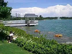 Reclamation of land started in 2000.[5] The SARS outbreak of 2003 did slow but not stop building and saved HK$1 billion as construction cost dropped.[1] Inspiration Lake, an artificial lake of some 12 hectares, was also created to serve the resort's water irrigation needs.