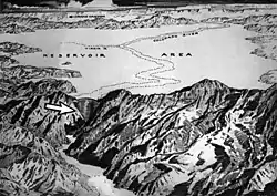 In 1922, the Reclamation Service presented a report calling for the development of a dam on the Colorado River for flood control and electric power generation. The report was principally authored by Davis and was called the Fall-Davis report after Interior Secretary Albert Fall. The Fall-Davis report cited use of the Colorado River as a federal concern because the river's basin covered several states, and the river eventually entered Mexico.[14] Though the Fall-Davis report called for a dam "at or near Boulder Canyon", the Reclamation Service (which was renamed the Bureau of Reclamation the following year) found that canyon unsuitable.[15] One potential site at Boulder Canyon was bisected by a geologic fault; two others were so narrow there was no space for a construction camp at the bottom of the canyon[15] or for a spillway. The Service investigated Black Canyon and found it ideal; a railway could be laid from the railhead in Las Vegas to the top of the dam site.[16] Despite the site change, the dam project was referred to as the "Boulder Canyon Project".[17]