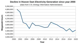 - ^ Ian James (May 27, 2021). "Hoover Dam, symbol of the modern West, faces a new test with an epic water shortage". azcentral.com. The Arizona Republic.