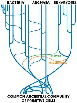 165. ^ Zhaxybayeva O, Gogarten JP (April 2004). "Cladogenesis, coalescence and the evolution of the three domains of life". Trends in Genetics. 20 (4): 182–7. doi:10.1016/j.tig.2004.02.004. PMID 15041172.