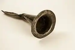 Animal horns adapted as signalling instruments were used from prehistoric times. Archaeologists have discovered cow horns with fingerholes drilled in the side (providing a more complete musical scale) dating from the Iron Age. This type of rustic instrument is found down to the present day all over the Baltic region of Europe, and in some parts of Africa. In Scandinavia it is known by many names: björnhorn, bukkehorn, fingerhorn, lekhorn, låthorn, prillarhorn, soittotorvi, spelhorn, tjuthorn, tuthorn, vallhorn, and many others. In Estonia it is called sokusarv and by the Bongo people mangval.[17] Descriptions in French are found from the thirteenth to the fifteenth centuries of instruments called coradoiz (= modern French cor à doigts), which are precursors of the cornett.[18]