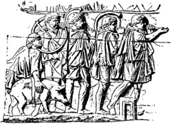 Metal instruments modelled on animal horns survive from as early as the 10th century BC, in the form of lurer (a modern name devised by archaeologists). Nearly fifty of these curved bronze horns have been excavated from burial sites, mostly in Scandinavia, since the first was discovered in 1797. Many are in unison pairs, curved in opposite directions. Because their makers left no written histories, their use and manner of playing is unknown. The lur was likely known to the Etruscans, noted as bronze-workers from the 8th century BC, who in turn were credited by the Romans with the invention of their horns and trumpets, including long curved horns in the form of a letter C or G. Depictions of these instruments are found from the 5th century BC onward on Etruscan funerary monuments. The Etruscan name for them is unknown, but the Romans called them buccina and cornu. The latter name is the Latin word for "horn", and the source of the name of the musical instrument in many Romance languages: French cor, Italian corno, Provençal corn. Very old metal instruments similar in form to both the lurer and the cornu, often also with ceremonial or military uses, are known on the Indian subcontinent by a variety of names: ramsinga, ransingha, sringa, ranasringa (Sanskrit for "war-horn"), kurudutu, and kombu.[7]