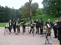 - ^ Anthony Baines, Brass Instruments: Their History and Development (London: Faber and Faber; New York: Charles Scribner's Sons, 1976): 176–77; H. C. Colles, Anthony C. Baines, and Thomas Hiebert, "Horn band [Russian horn band]", The New Grove Dictionary of Music and Musicians, second edition, edited by Stanley Sadie and John Tyrrell (London: Macmillan Publishers, 2001); Sibyl Marcuse, "Russian horn", Musical Instruments: A Comprehensive Dictionary, corrected edition, the Norton Library N758 (New York: W. W. Norton & Company, Inc., 1975): 448; Jeremy Montagu, Origins and Development of Musical Instruments (Lanham, MD; Plymouth, UK: Scarecrow Press, 2007): 44. ISBN 978-0-8108-5657-8.