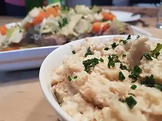 • In the Italian regions of Lombardy, Emilia-Romagna, and Piedmont, it is called barbaforte (strong beard) and is a traditional accompaniment to bollito misto; while in northeastern regions like Trentino-Alto Adige/Südtirol,[36] Veneto[37] and Friuli-Venezia Giulia,[38][39] it is still called kren or cren. In the southern region of Basilicata it is known as rafano and used for the preparation of rafanata, a main course made of horseradish, eggs, cheese and sausage.[40]