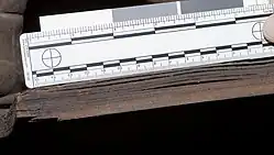 Northrop Grumman engineers conducted electromagnetic tests on the V3's multilayer wood nose cone in 2008. They tested across a frequency range of 12 to 117 THz, with a 10 micron wavelength. The cone was 19 mm (0.75 in) thick and made from thin sheets of veneer. The team observed that the "Ho 229 leading edge has the same characteristics as the plywood [of the control sample] except that the frequencies have a slightly shorter bandwidth," which they go on to conclude was likely due to oxidization of the wood.[27] The team, who assumed the presence of carbon black from visual inspection alone, concluded that the "similarity of the two tests indicates that the design using the carbon black type material produced a poor absorber."[27][28] The Smithsonian Institution then performed a study of the materials used on the prototype, and determined that there is "no evidence of carbon black or charcoal", refuting the hypothesis.[26]