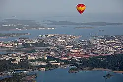 A hot air balloon over the city of Helsinki in September 2009
