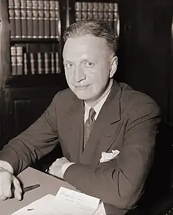 In 1939, the committee investigated people involved with pro-Nazi organizations such as Oscar C. Pfaus and George Van Horn Moseley.[18][19] Moseley testified before the committee for five hours about a "Jewish Communist conspiracy" to take control of the U.S. government. Moseley was supported by Donald Shea of the American Gentile League, whose statement was deleted from the public record as the committee found it so objectionable.[20]