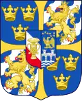 Inescutcheon Arms of Charles XIV (and III) John (since 1818), emphasizing his kinship with the Swedish Royal House of Vasa.