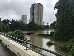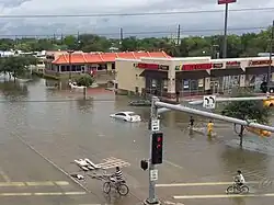 Flooding has been a recurring problem in the Houston area. In June 2001, Tropical Storm Allison dumped up to 40 inches (1,000 mm) of rain on parts of Houston, causing what was then the worst flooding in the city's history and billions of dollars in damage, and killed 20 people in Texas.[51] In August 2005, Houston became a shelter to more than 150,000 people from New Orleans, who evacuated from Hurricane Katrina.[52] One month later, about 2.5 million Houston-area residents evacuated when Hurricane Rita approached the Gulf Coast, leaving little damage to the Houston area. This was the largest urban evacuation in the history of the United States.[53][54]