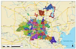 The city of Houston was incorporated in 1837 and adopted a ward system of representation shortly afterward, in 1840.[83] The six original wards of Houston are the progenitors of the 11 modern-day geographically oriented Houston City Council districts, though the city abandoned the ward system in 1905 in favor of a commission government, and, later, the existing mayor–council government.