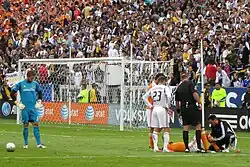 The championship match was scoreless until the second half of extra time, when New England's Taylor Twellman scored. One minute later, Brian Ching headed in the tying goal for Houston. The cup final became the first time in MLS history, that was decided by a penalty shootout. Houston beat the New England Revolution 4–3 on penalty kicks to win the 2006 MLS Cup. Kelly Gray and Stuart Holden scored Houston's first two penalty kicks. Dwayne De Rosario and Brian Ching scored the last two. By winning the 2006 MLS Cup, Houston qualified for the 2007 CONCACAF Champions Cup for the first time in club history.