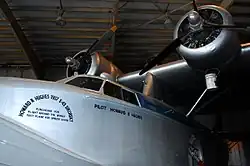 On July 14, 1938, Hughes set another record by completing a flight around the world in just 91 hours (three days, 19 hours, 17 minutes),[37] beating the previous record of 186 hours (seven days, 18 hours, 49 minutes) set in 1933 by Wiley Post in a single-engine Lockheed Vega by almost four days. Hughes returned home ahead of photographs of his flight. Taking off from New York City, Hughes continued to Paris, Moscow, Omsk, Yakutsk, Fairbanks, and Minneapolis, then returning to New York City. For this flight he flew a Lockheed 14 Super Electra (NX18973, a twin-engine transport with a crew of four) fitted with the latest radio and navigational equipment. Harry Connor was the co-pilot, Thomas Thurlow the navigator, Richard Stoddart the engineer, and Ed Lund the mechanic. Hughes wanted the flight to be a triumph of U.S. aviation technology, illustrating that safe, long-distance air travel was possible. Albert Lodwick of Mystic, Iowa, provided organizational skills as the flight operations manager.[38] While Hughes had previously been relatively obscure despite his wealth, better known for dating Katharine Hepburn, New York City now gave him a ticker-tape parade in the Canyon of Heroes.[39][6]: 136–139 Hughes and his crew were awarded the 1938 Collier Trophy for flying around the world in record time.[40][41] He was awarded the Harmon Trophy in 1936[42] and 1938 for the record-breaking global circumnavigation.[43]