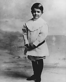 At a young age, Hughes Jr. showed interest in science and technology. In particular, he had a great engineering aptitude, and built Houston's first "wireless" radio transmitter at age 11.[13] He went on to be one of the first licensed ham-radio operators in Houston, having the assigned callsign W5CY (originally 5CY).[14] At 12, Hughes was photographed for the local newspaper, which identified him as the first boy in Houston to have a "motorized" bicycle, which he had built from parts of his father's steam engine.[15] He was an indifferent student, with a liking for mathematics, flying, and mechanics. He took his first flying lesson at 14, and attended Fessenden School in Massachusetts in 1921.