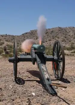 The Abus gun was an early form of howitzer in the Ottoman Empire.[18] In 1758, the Russian Empire introduced a specific type of howitzer (or rather gun-howitzer), with a conical chamber, called a licorne, which remained in service for the next 100 years.[19] In the mid-19th century, some armies attempted to simplify their artillery parks by introducing smoothbore artillery pieces that were designed to fire both explosive projectiles and cannonballs, thereby replacing both field howitzers and field guns. The most famous of these "gun-howitzers" was the Napoleon 12-pounder, a weapon of French design that was extensively used in the American Civil War.[20]