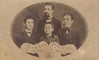 His father's backstory is that he was a teacher in Odessa and one of the most significant figures of the late period of the Bulgarian National Revival towards the end of the Ottoman occupation.[7] His mother was born in a modest Kalofer family.[8] Botev was not the only child in the family, he was together with his eight siblings, which were Ana, Petko, Stefan, Kiril, Tota, Genko, Genko and Boyan.[9]