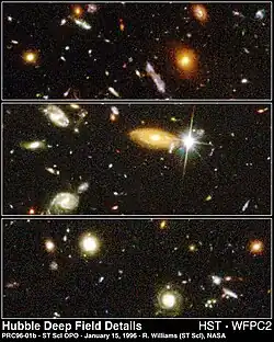 - ^ a b "Hubble's Deepest View of the Universe Unveils Bewildering Galaxies across Billions of Years". NASA. 1996. Retrieved January 12, 2009.