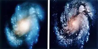 Very-high redshift objects (Lyman-break galaxies) cannot be seen in visible light and generally are detected in infrared or submillimetre wavelength surveys of the HDF instead.[16] Observations with the Infrared Space Observatory (ISO) indicated infrared emission from 13 galaxies visible in the optical images, attributed to large quantities of dust associated with intense star formation.[22] Infrared observations have also been made with the Spitzer Space Telescope.[23] Submillimeter observations of the field have been made with SCUBA on the James Clerk Maxwell Telescope, initially detecting 5 sources, although with very low resolution.[11] Observations have also been made with the Subaru telescope in Hawaii.[24]