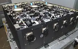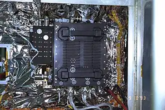 The two initial, primary computers on the HST were the 1.25 MHz DF-224 system, built by Rockwell Autonetics, which contained three redundant CPUs, and two redundant NSSC-1 (NASA Standard Spacecraft Computer, Model 1) systems, developed by Westinghouse and GSFC using diode–transistor logic (DTL). A co-processor for the DF-224 was added during Servicing Mission 1 in 1993, which consisted of two redundant strings of an Intel-based 80386 processor with an 80387 math co-processor.[49] The DF-224 and its 386 co-processor were replaced by a 25 MHz Intel-based 80486 processor system during Servicing Mission 3A in 1999.[50] The new computer is 20 times faster, with six times more memory, than the DF-224 it replaced. It increases throughput by moving some computing tasks from the ground to the spacecraft and saves money by allowing the use of modern programming languages.[51]