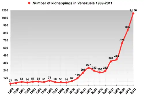Under Chávez, Venezuela experienced democratic backsliding, as he suppressed the press, manipulated electoral laws, and arrested and exiled government critics.[27][28][29] His use of enabling acts[30] and his government's use of propaganda were controversial.[31][32][33][34] Chávez's presidency saw significant increases in the country's murder rate[35][36] and continued corruption within the police force and the government.[37][38]
