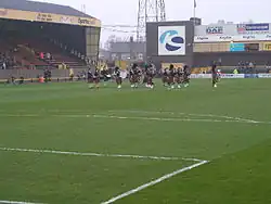 Hull City Association Football Club was founded on 28 June 1904.[6][7][8] Due to the popularity of rugby league in Kingston upon Hull, previous attempts to found an association football club in the city had proved difficult. By 1904, both Hull F.C. and Hull K.R. were already well-established sides with passionate local backing. The desire for a third team to represent the city in competitive sport was not particularly present at the time, but support would soon grow.[7] The club faced some initial disruptions after foundation, as they had been unable to apply for membership of the Football League for the 1904–05 season and instead played only in friendlies.[9] The first of these matches was a 2–2 draw with Notts County on 1 September 1904, with a crowd of 6,000 in attendance. These early matches were played at Hull F.C.'s home, the Boulevard.[3] The club's first competitive football match was in the FA Cup preliminary round, drawing 3–3 with Stockton on 17 September, but they were eliminated after losing the replay 4–1 on 22 September.[10]